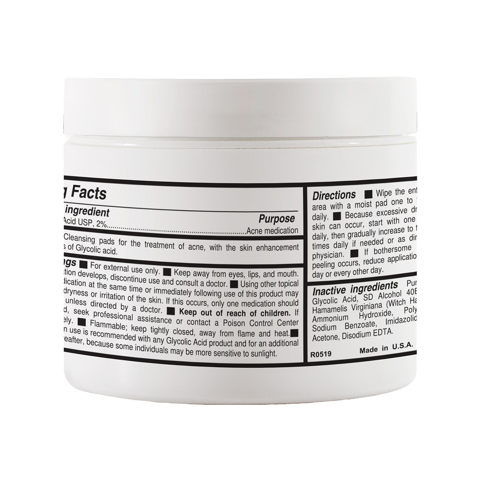 Salicylic acid USP, and glycolic acid are used in combination with hydrating ingredients in these easy-to-use pads to promote exfoliation, control oil, reduce breakouts and clogged pores. They help enhance skin clarity and are pH balanced.
